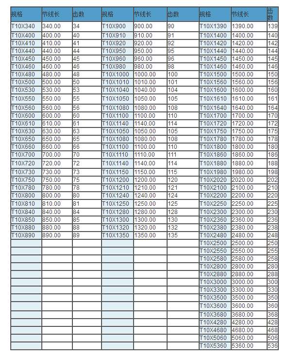 同步帶技術(shù)參數(shù)