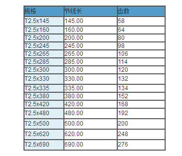 同步帶技術參數