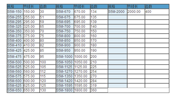 同步帶技術參數