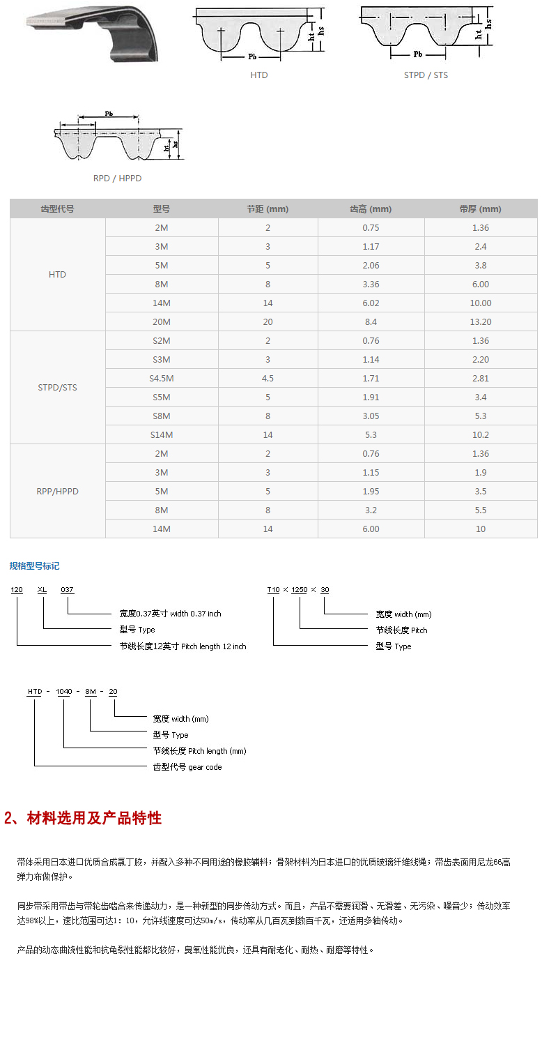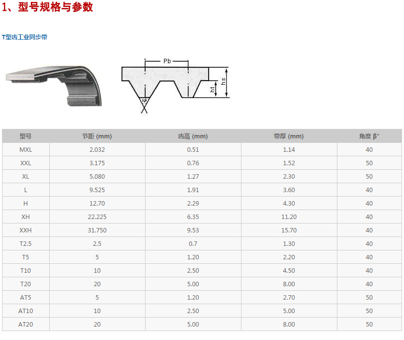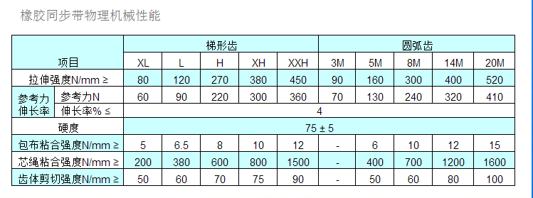 同步帶技術(shù)參數(shù)