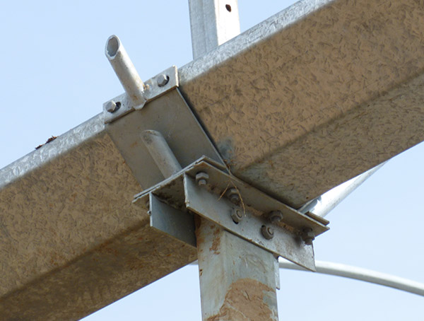 Greenhouse framework adopts the hot dip galvanizing profile. All processing components adopt the process of welding before galvanizing, and its quality could be guaranteed for 20 years. The attached quantity of zinc is 490g/m2, and the thickness is more than 70 μm. All components are assembled at site, and the connecting pieces and fasteners don't corrode for 20 years.