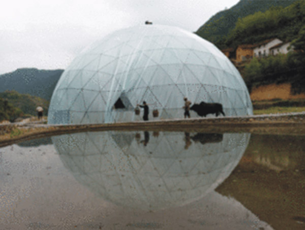 球形溫室也叫鳥巢溫室,它是一種基于仿生學的一種新型溫室,它利用自然界的鳥類筑巢的三角交叉法,及結合風巢的六角加固方式復合而成的高強度耐自然災害性天氣的曲面球形溫室。這種溫室應用于立體栽培、水產養殖、觀光農業。既具個性化的風格,又能降低成本,顯得更為生態與創意,球形溫室,特別是作為休閑的日光溫室或者生態餐廳,更具實用性.如果形成球形的度假山莊或者構造生態農莊,具有吸引性與實用性,球形溫室建設,必將有廣泛的運用前景.