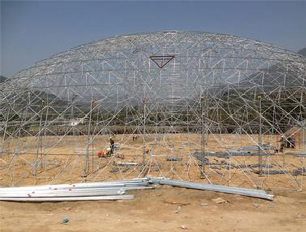 球形溫室又稱穹頂溫室、圓頂溫室,是以球體的幾何形狀作為溫室的骨架結構,該溫室以三角構造為特點,符合三角穩(wěn)固性原理,使溫室的抗壓性得以提高,是溫室建造技術的一大創(chuàng)新。