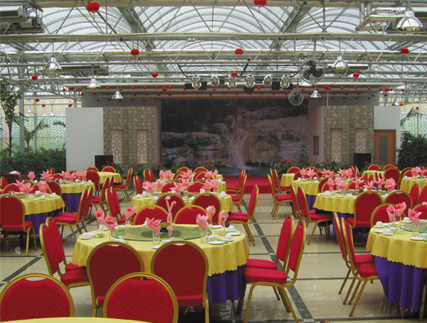 昊陽溫室工程有限公司承建的生態(tài)餐廳,克服了種植溫室易結(jié)露,視野小的弊端,以大空間,舒適、環(huán)保為理念,設(shè)計開發(fā)了高屋脊、大跨度、大空間的專用類型,覆蓋材料采用玻璃或PC板,外形造型美觀,恢弘大氣,內(nèi)部視野開闊,寬敞明亮。置身與其中,既能感受田園的韻味,又能享受美味佳肴。